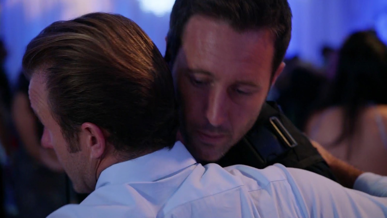 A cena de Lou ligando para o filho é linda. Lou é muito sentimental apesar de parecer um policial durão. Não é a primeira vez que o vemos chorar numa situação desesperadora, ele chorou como uma criança quando sua filha foi sequestrada (Danno que o acalmou, lembram?), ele chorou também quando Steve estava entre a vida e a morte no final da sexta temporada e ele chorou agora falando com o filho que caiu por acaso nessa situação louca. Então ele pede para o garoto ser corajoso novamente, sair do seu esconderijo e enviar imagens do local onde os outros adolescentes estão, para que eles possam planejar uma entrada estratégica já que eles não tem nenhuma moeda de troca para negociação com os sequestradores. Will obedece e consegue mostrar como as coisas estão dentro do salão. Também vemos Grace dar o braço a torcer e dizer que está feliz que seu Danno está lá, ela sabe que a situação seria muito mais favorável a terminar mal se ele não estivesse. É essa Grace que amamos!